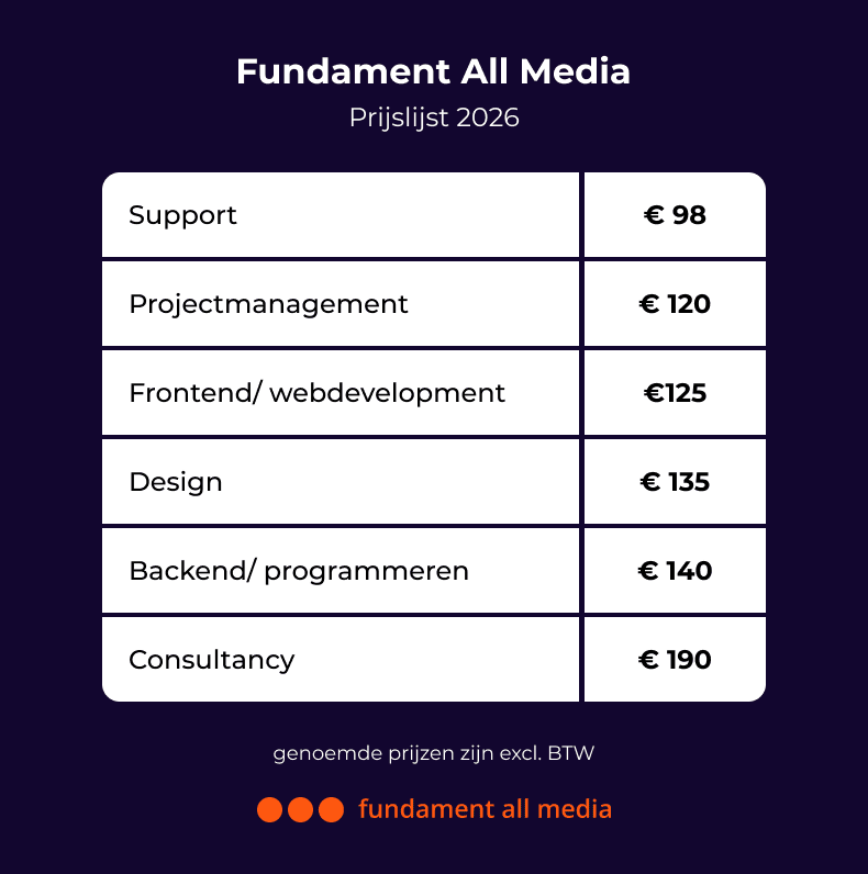 Benieuwd naar de belangrijkste wijzigingen voor 2026, hierbij onze nieuwe prijzen.